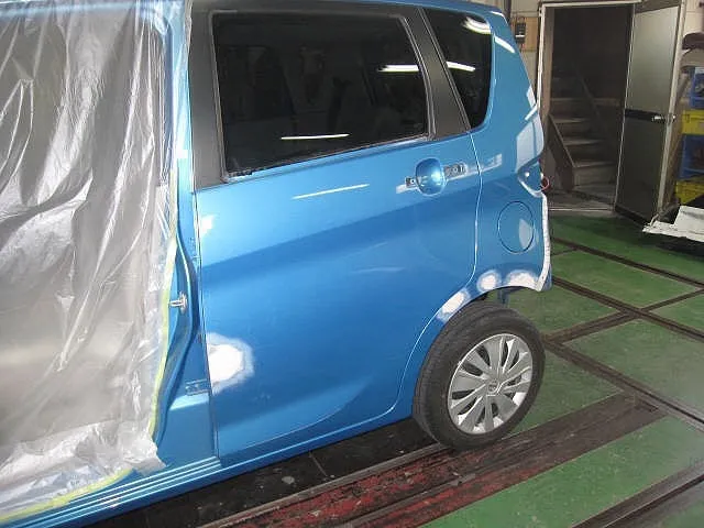 三鷹市 日産 デイズ 鈑金塗装事例 リアドア キズ・ヘコミ修理│東京都武蔵野市 カーコンビニ倶楽部みなと自動車工業