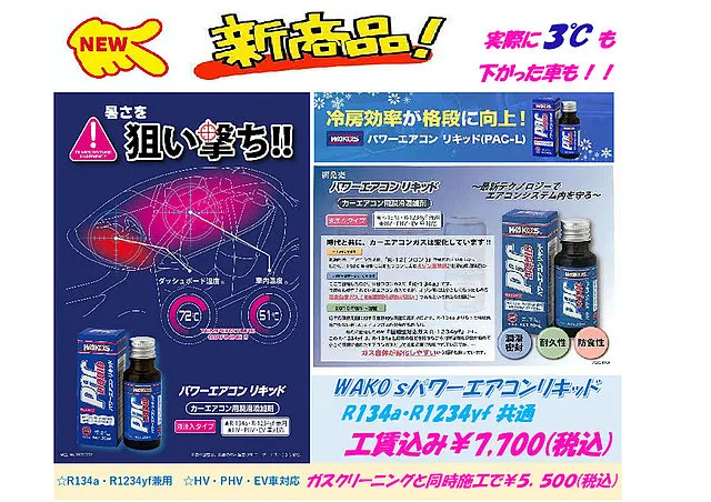 今回は人気のWAKO’S パワーエアコンリキッドをご提案させていただき、同時施工となりました。
